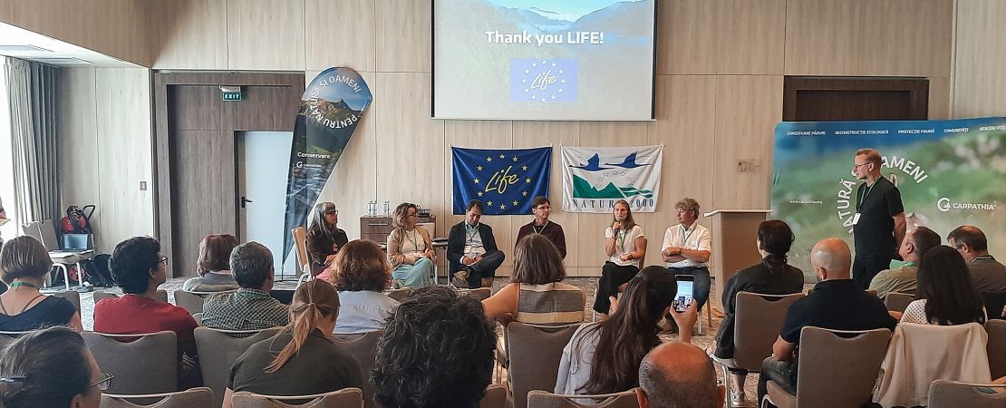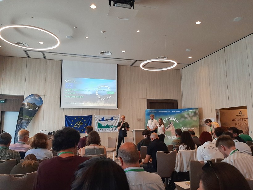 The opening day was marked by plenary lectures and discussions with experts from the European Commission, research institutions and the non-profit sector. For example, Marco Onida from Directorate-General for the Environment (DG ENV) presented the new EU Forest Strategy 2030 and its biodiversity and climate objectives. Gonzalo Gonzales Jurado (DG ENV) talked about the legislative challenges and opportunities for European forest restoration. CINEA representatives Simona Bacchereti and Boyana Vasileva highlighted the benefits of LIFE for nature conservation and climate change adaptation. The panel discussion was enriched by Barbara and Christoph Promberger, founders of the Conservation Carpathia Foundation, who shared their experience in restoring forest ecosystems in the Romanian Southern Carpathians.