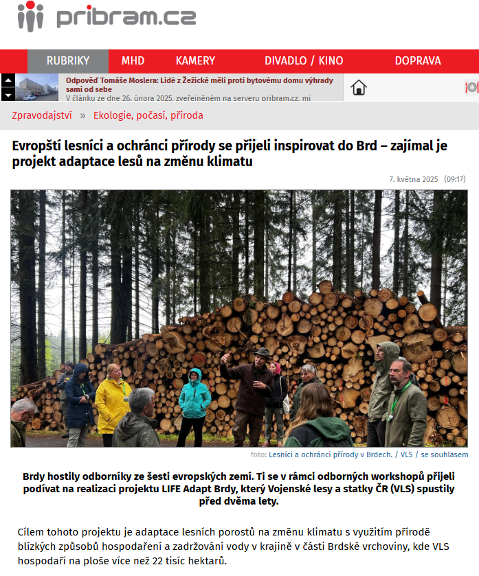 Pribram.cz: European foresters and nature conservation experts came to the Brdy region for inspiration - they were interested in the project of adaptation of forests to climate change